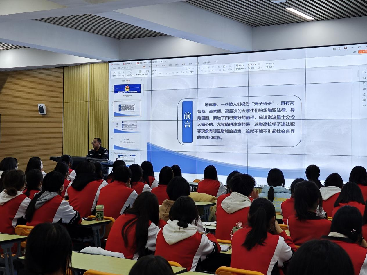 姚警官从“什么是宪法”“宪法的基本内容”“宪法的内容性质和地位”“大学生常见的违法犯罪事件”“预防电信诈骗、网络诈骗、出租出借银行卡等”以及“性的心理健康”等方面进行讲解,阐明宪法是我国的根本法,尊崇宪法、学习宪法、维护宪法、遵守宪法和运用宪法是我们的共同责任。他还结合生活中的典型实例,教育广大青少年要进一步增强法制意识,做到知法、懂法和守法。他用通俗易懂的语言向同学们打开了一扇通往法律知识的窗户,精彩的讲座博得全场阵阵掌声。