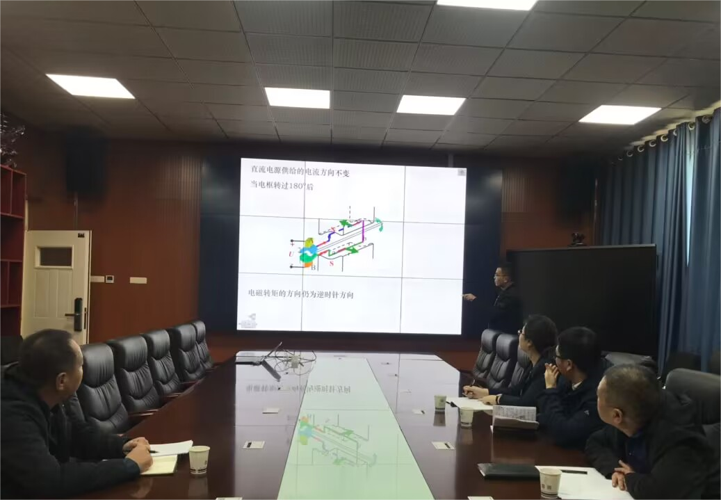 教学活动中,刘艳峰老师选取《电机学》中的直流电动机的工作原理作课堂教学展示。刘老师首先播放了一段视频,讲述了中国近年来取得的重大科技成果,比如中国天眼、长征五号、京新高速公路、山东舰入列和复兴号等等。视频完毕,刘老师强调了科技自立自强的重要意义,并告诉学生,电动机在日常生活和高科技领域中都有广泛应用,引出了本节课的教学内容。课程准备充分,讲解流利,PPT制作精美。课程结束后,老师们积极讨论,大家一致认为:专业课程为课程思政提供了外显的知识载体,国家取得的伟大成就让每个中国人激情澎湃。学术观、职业观和科研观通过知识的传递,悄然在学生心中种下,育人特点润物无声。
