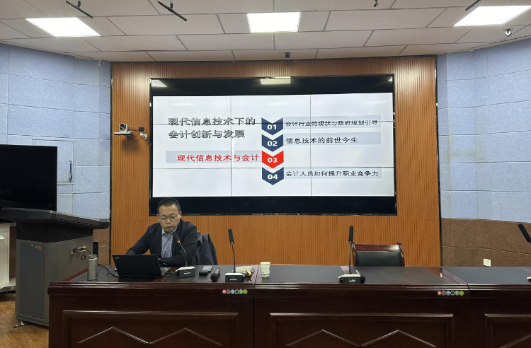 按照《酒泉职业技术学院第四届“胡杨·科技文化艺术节”活动实施方案》要求,经济管理学院与甘肃天一会计师事务有限公司共同筹划了“注册会计师进校园”系列讲座活动。12月12日下午,学院邀请甘肃天一会计师事务有限公司董事长、注册会计师黄德全先生作了题为“现代信息技术下的会计创新与发展”的专题讲座,拉开了本次系列讲座活动的帷幕。学院全体无课教师及2022级大数据与会计专业80余名学生聆听了讲座。学院党支部副书记魏旭江主持讲座。