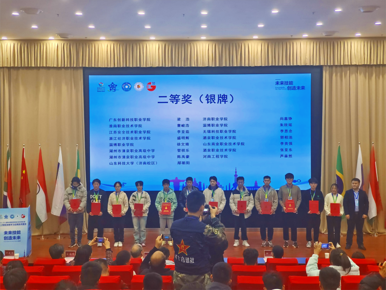 12月9日,2023“一带一路”暨金砖国家技能发展与技能创新大赛人工智能应用技术赛项全国总决赛在安徽阜阳职业技术学院举行。经过激烈比拼,我院2022级计算机应用技术1班学生郭相池、张亚东荣获二等奖。
