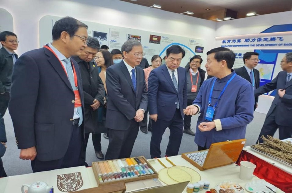 12月20日--21日,由中华职业教育社主办的“一带一路”职业教育国际论坛在河北保定召开,来自27个国家的政府、驻华使领馆、商会代表,24个国际组织、世界500强企业和国外院校及海外代表,中华职业教育社各级组织领导,地方政府、产教融合企业、职业院校代表等500余人与会。我校《再现敦煌--敦煌壁画非遗传承与创新》项目受主办方邀请赴保定进行现场展演。该项目依托省级非遗项目“敦煌石粉彩绘技艺”,结合敦煌剪纸、陶瓷釉下彩绘等非遗技艺,进行非遗创新设计,作品坚持非遗要“创造性转化、创新性发展”的原则,深入挖掘敦煌文化内涵,提炼非遗元素,从材料、构成、表现等方面进行创新设计,作品形式独特、表现力强,具有浓郁的文化和地域特色。展演期间,我校教师就非遗赋能职教人才培养等问题与参会嘉宾、与会代表进行了广泛的交流,全国人大常委会副委员长、中华职业教育社理事长郝明金详细了解了我校敦煌文化非遗传承情况并给予了充分的肯定。
