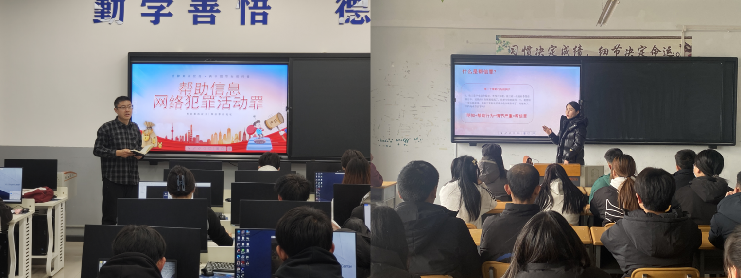 班会中,各班主任老师以案说法、以案说诈,图文并茂地讲解“帮信罪”的含义、行为、危害以及防范措施等,并指出学生群体涉世未深,很容易被“兼职”、“低成本,高收入”、“零风险”等话术欺骗、利诱,从而进了“帮信罪”的坑,不仅会承担法律风险,且会在将来留下“案底”,给自己的升学、就业以及社会生活埋设障碍,代价不可谓不大。同时提醒广大同学保护好个人信息,做好个人防范,意识到网络犯罪就在我们身边,共同参与,共同防范。