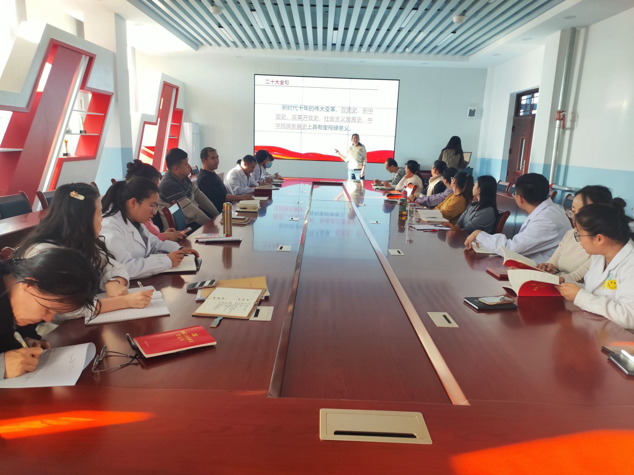 为深入学习贯彻党的二十大精神,持续营造浓厚学习宣传氛围,深化理论学习、凝聚思想共识,把党员干部的思想统一到党的二十大精神上来,把力量凝聚到党的二十大各项工作中来,1月5日,医学院党支部副书记段国萍在弘远楼A501会议室为全体党员讲授学习党的二十大精神专题党课。