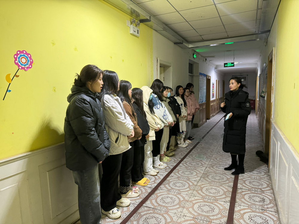 本次活动内容共有三部分。首先由酒泉市各实习点指导老师组织召开实习安全教育,包括消防安全、人身安全、防范诈骗、心理安全和交通安全等内容,旨在提升实习学生安全意识,降低实习过程的安全风险;安全教育会后,由院领导带队对宿舍内安全情况进行进行检查,通过实地查看、交流谈话等方式,重点对水、电、暖安全使用和运行情况进行了检查,对能即时整改的安全隐患问题及时指出并指导纠正,学生反应的取暖、用水、漏水等困难即时通过智慧后勤上报维修,交流过程对学生的实习就业规划情况给予关注指导,让学校的关爱和温暖走进宿舍。