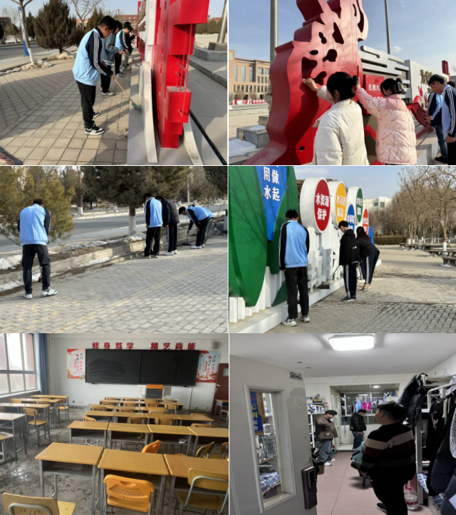 学院团学管理办公室组织开展了“弘扬雷锋精神,共创文明校园”主题活动启动仪式。从课堂文明、举止文明、网络文明、宿舍文明、食堂文明等5个方面,向全体同学发出“文明校园,你我共建”倡议。仪式结束,组织志愿者对图书馆周边文化雕塑、景观凳进行了清洁。同时,学院组织全体学生对教室、宿舍卫生进行了彻底清洁。