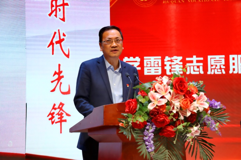 魏鞾宣布活动启动并讲话,他指出,在过去的一年,学校志愿者围绕赛会服务、扶老助残、环境保护、公益劳动、儿童关爱等方面,开展了形式多样的学雷锋志愿服务活动,为学校精神文明建设做出了积极的贡献。他强调,全体师生要点面结合,多措并举,不断汇聚志愿服务力量;要乐于助人、甘于奉献,不断增强志愿服务意识;要锐意进取、开拓创新,不断丰富志愿服务内涵;要勤俭节约、艰苦奋斗,不断推动节约行动自觉。