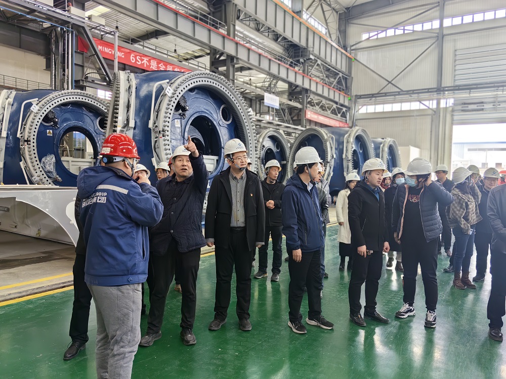 而后,大家来到甘肃明阳智慧能源有限公司,佩戴好安全帽,跟随企业人员进入设备车间进行参观学习。甘肃明阳基于甘肃省新能源产业发展规划和战略署,立足打造甘肃省新能源产业设备制造基地,建立以酒泉为中心,辐射青海、甘肃、宁夏、新疆及蒙西等西北乃至中亚地区的风电、光伏装备制造及风、光互补电站一体化项目基地。同时,甘肃明阳也是风电专业学生顶岗实习的主阵地之一,有效实现了学习岗位无缝对接企业就业岗位,赋能“产业、专业、就业”三业的融合发展。