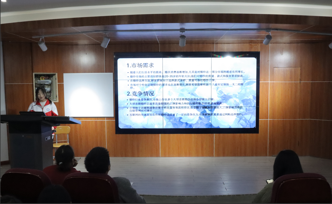 选拔赛采用了“5分钟汇报+2分钟答辩”模式,各参赛团队分别从项目背景、市场分析、项目规划、潜在风险、解决方案、实施过程、社会效益及财务风险等方面进行陈述。评委们从团队项目的创意性、可行性、商业性、合作性、严谨性等方面进行进行点评和打分,并给出指导意见。最终,“青韵扶摇”“书法遗韵·创新文产惠民生”“秘密鸡地”“丝路有礼”等六个项目团队推荐参加校级“三创赛”。