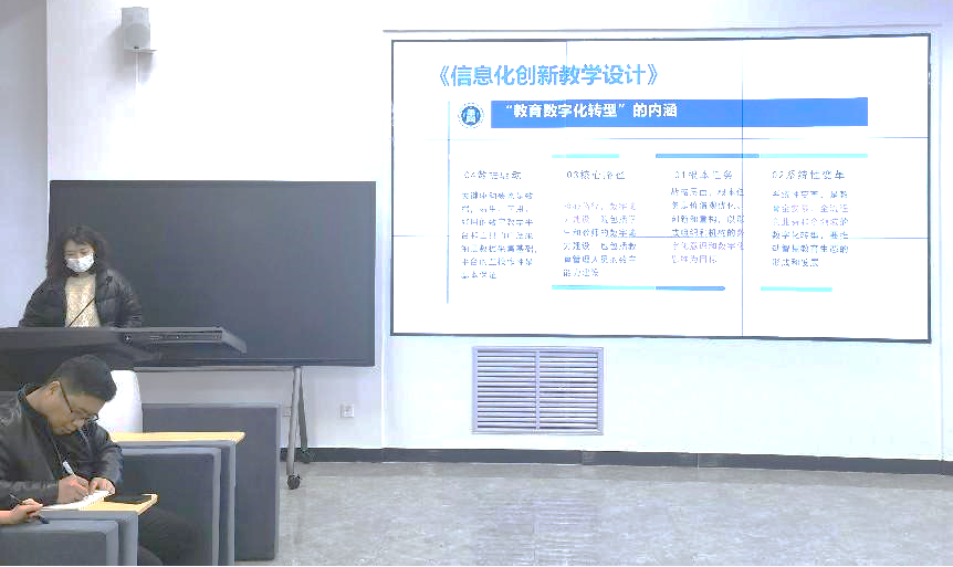 阎绚绚老师以《信息技术应用能力助力课堂教学创新》为题,提出教师教学应在多媒体技术、网络平台应用基础上,多尝试融入AI智能软件以及各类智慧学习平台和资源,丰富混合式教学模式内涵,提升教育教学质量。