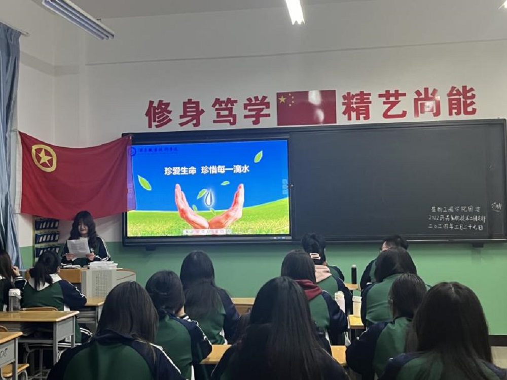 为提高同学们对水资源保护的认识,倡导节约用水的生活习惯,生物工程学院团委于3月27日在逸夫楼组织各团支部召开“融青春·节水行”学校水文化主题团会。