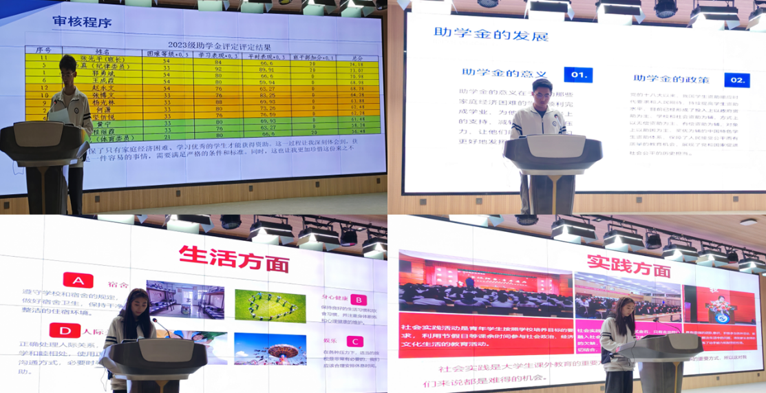 榜样催人奋进,使命呼唤担当。我院9名获得一等助学金的代表从助学金受助政策、受助申请流程、学习规划、能力锻炼、社会实践等多个方面分享了受助感悟、成长收获,以及心怀感恩的所思所想。此次分享会的开展,使同学们有了更为清晰的方向,启发同学们学习身边榜样,引导同学们砥砺奋进,更好地经营自己的大学生活。