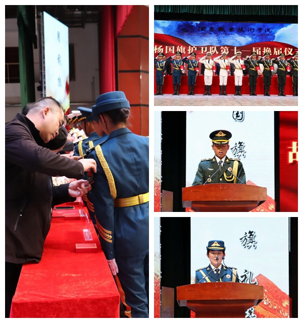 在新老队员交接仪式上,新老擎旗手、护旗手、指挥官进行了国旗、护卫枪、指挥刀的交接,仪式在新老队员宣誓中落下帷幕,全体参会人员在胡杨文化活动中心合影留念。