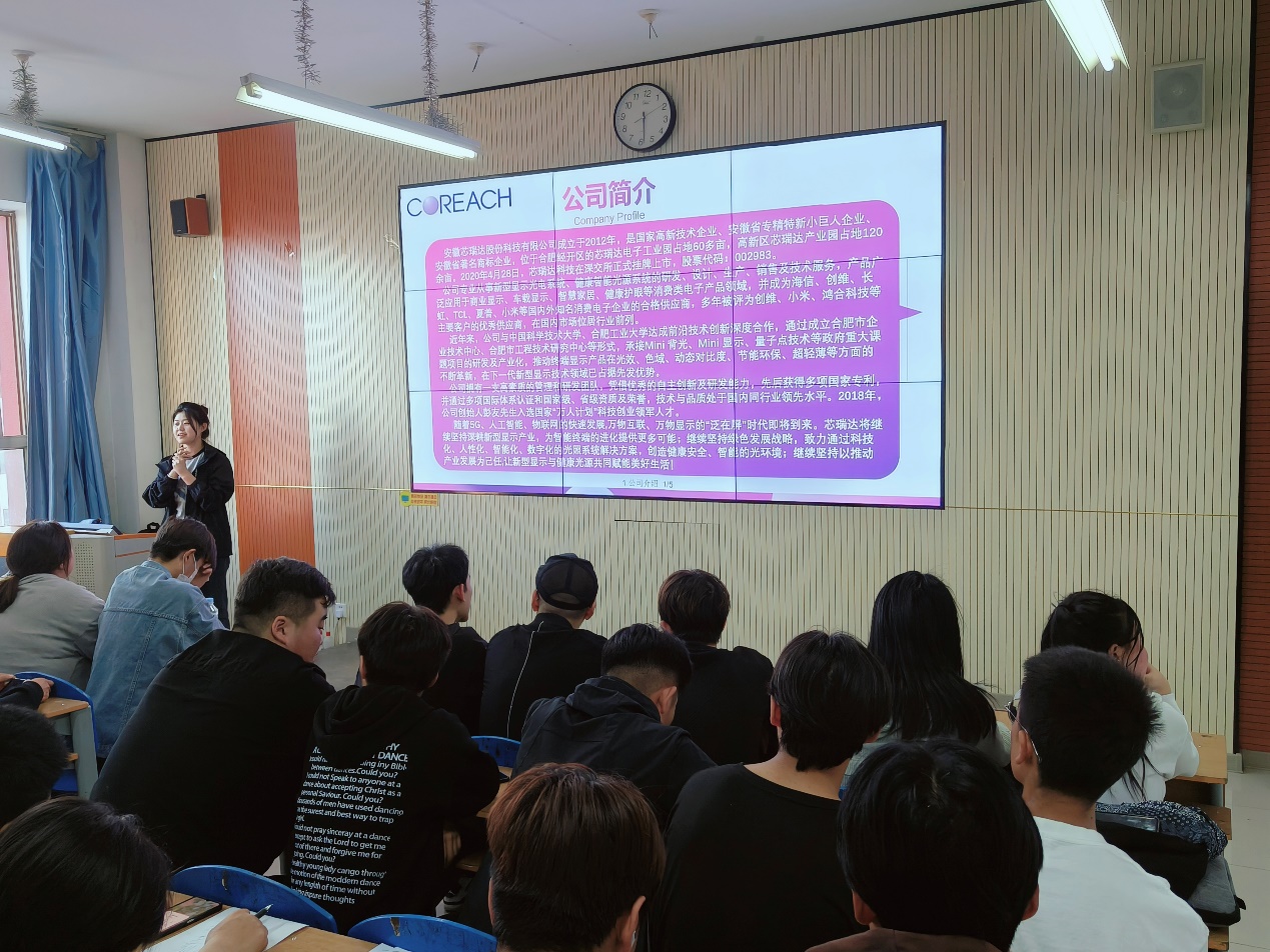 宣讲会上,安徽芯瑞达科技股份有限公司臧经理为学生们介绍了公司发展战略、业务领域、企业文化、管理制度、工作内容及薪酬福利,并详细解答了学生有关实习与就业岗位信息、发展前景等方面的问题,为学生们提供了深入了解行业和企业的机会。