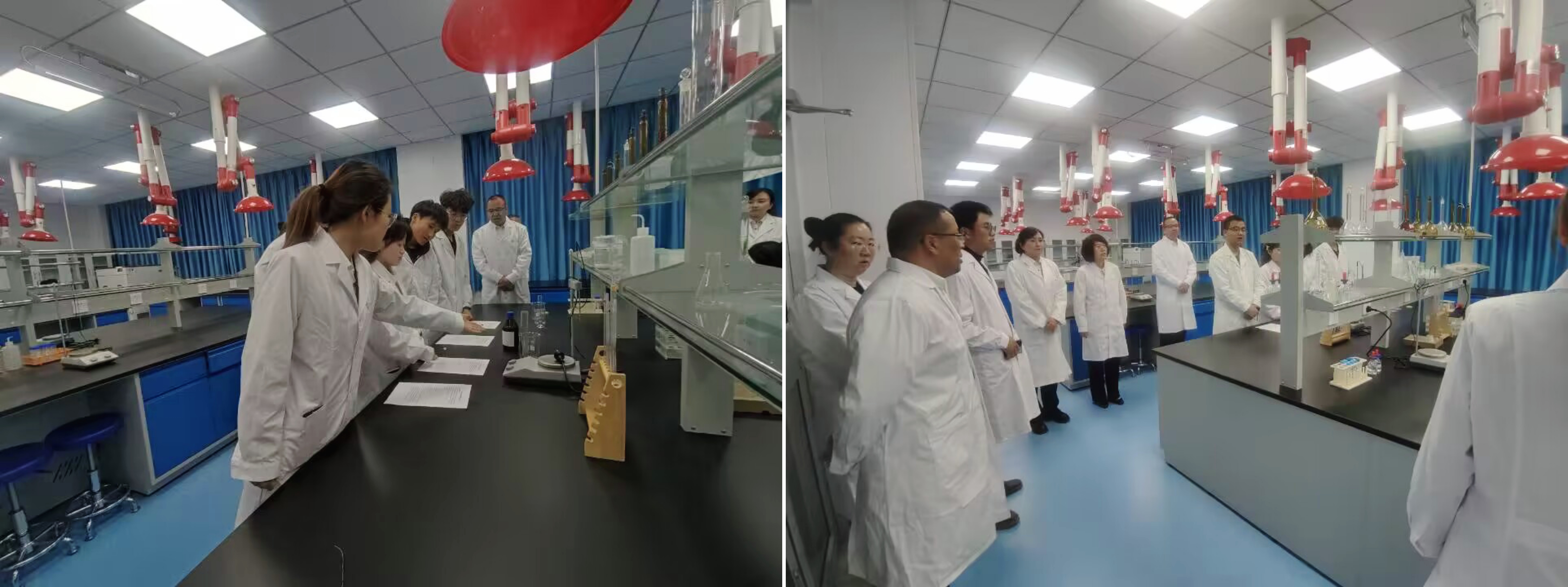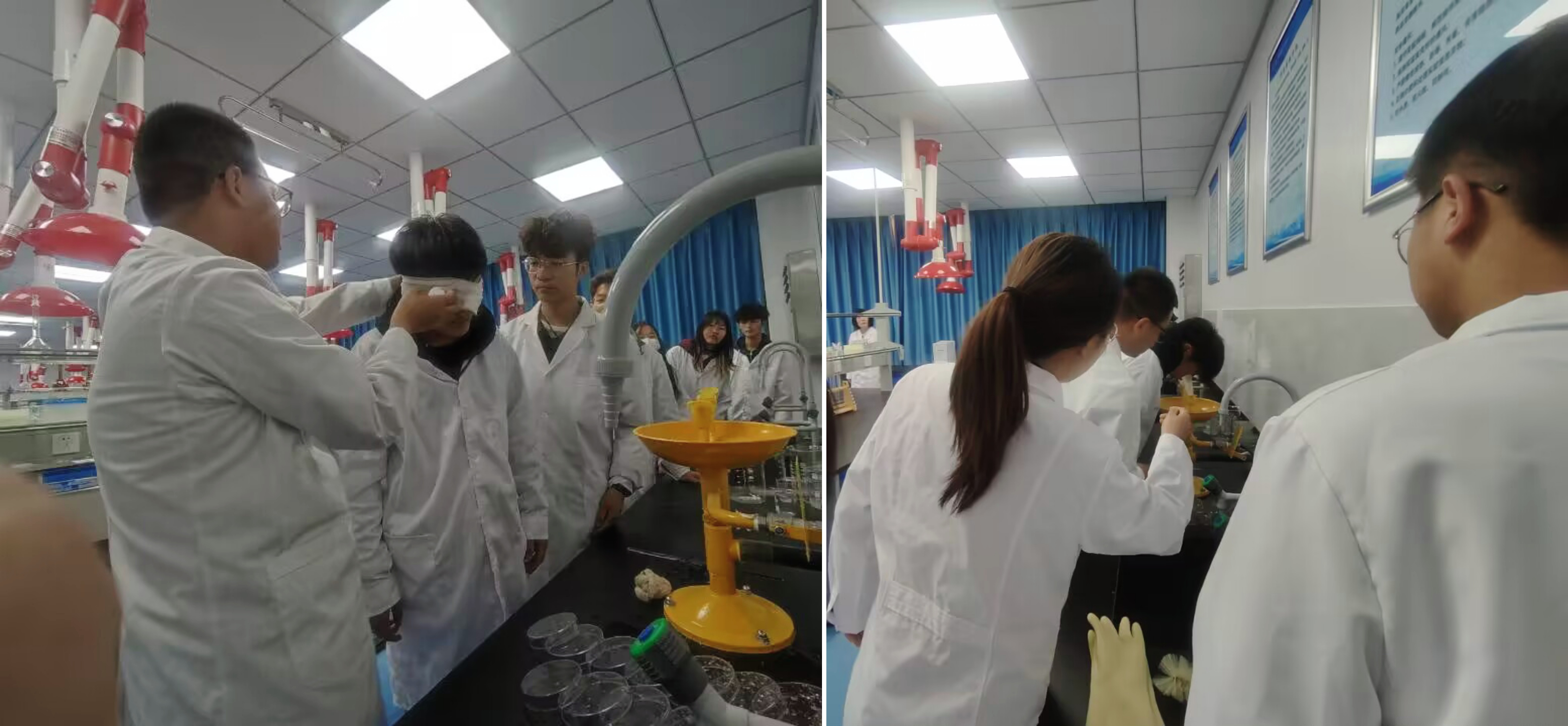 本次演练首先由实验指导老师呼芳娣对化学药品的安全使用方法进行了讲解,并强调了盐酸等危险化学品的危害,以及在接触皮肤、眼睛后应立即采取的急救措施。然后,按照演练预案,一名学生在使用盐酸时不小心将盐酸溶液溅入眼睛,实验指导老师立即组织学生将受伤同学搀扶到洗眼器前冲洗眼睛。随后,立即联系医院准备救治,并将突发情况上报学院领导,待冲洗20分钟后,将受伤同学眼睛用纱布包裹好,并紧急送往医院进一步检查治疗。