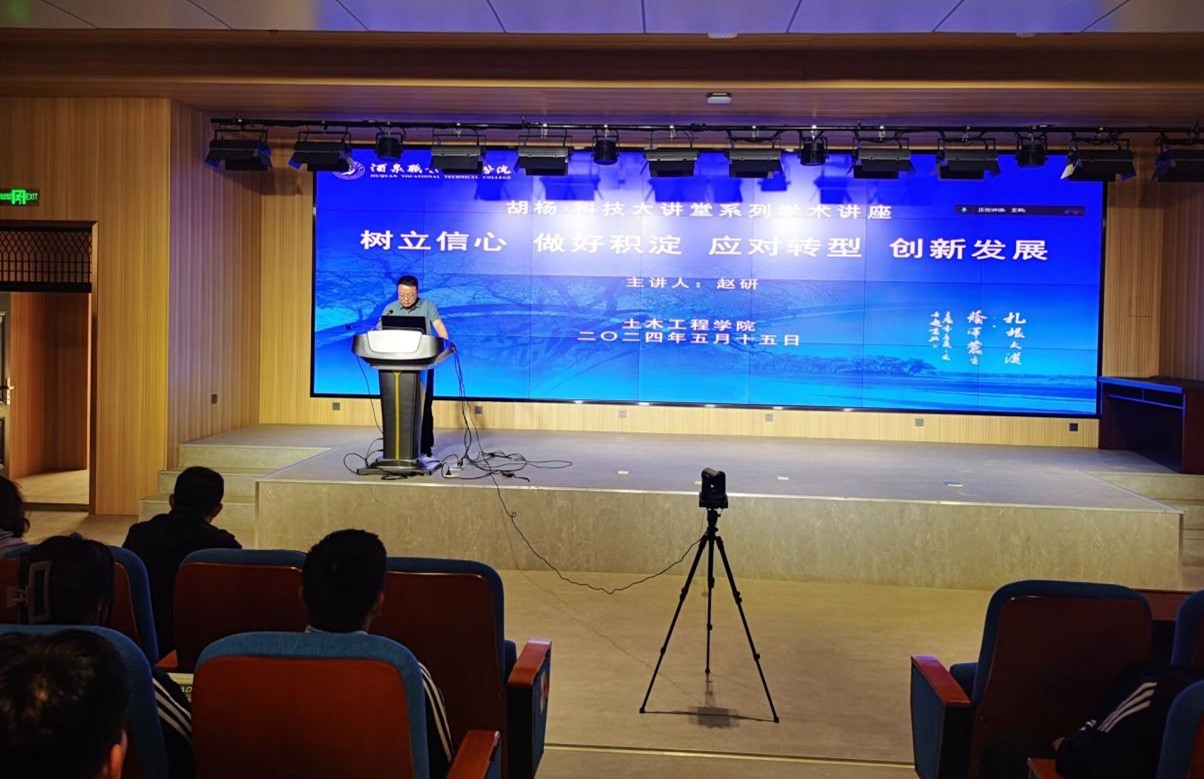 为了能更好的适应未来土木行业转型发展需求,掌握土木行业变革信息,正确研判土木行业当前发展形势,进一步统一认识、坚定信心、开拓进取、积极推进土木类专业建设创新发展和人才培养新高地建设。2024年5月15日下午,土木工程学院开展了“胡杨·科技大讲堂”系列讲座活动,本次活动邀请全国住房和城乡建设职业教育教学指导委员会委员、土建施工类专业指导委员会副主任赵研教授做了题为《树立信心 做好积淀 应对转型 创新发展》的在线讲座。活动由土木工程学院党支部书记、院长田政锋同志主持,参加本次讲座的还有土木工程学院全体教师和学生。