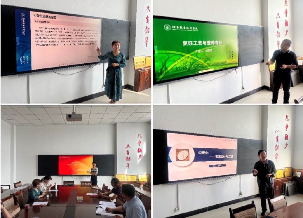 旅游管理、烹饪工艺与营养、酒店管理与数字化运营、玉器设计与工艺专业带头人张英华、杨国斌、何玉静、王权朝主任分别从人才培养模式、课程体系、师资队伍、特色创新、教学团队及教学资源等方面对本专业进行详细介绍,阐述了专业建设成绩和经验、问题和不足以及今后的发展思路。