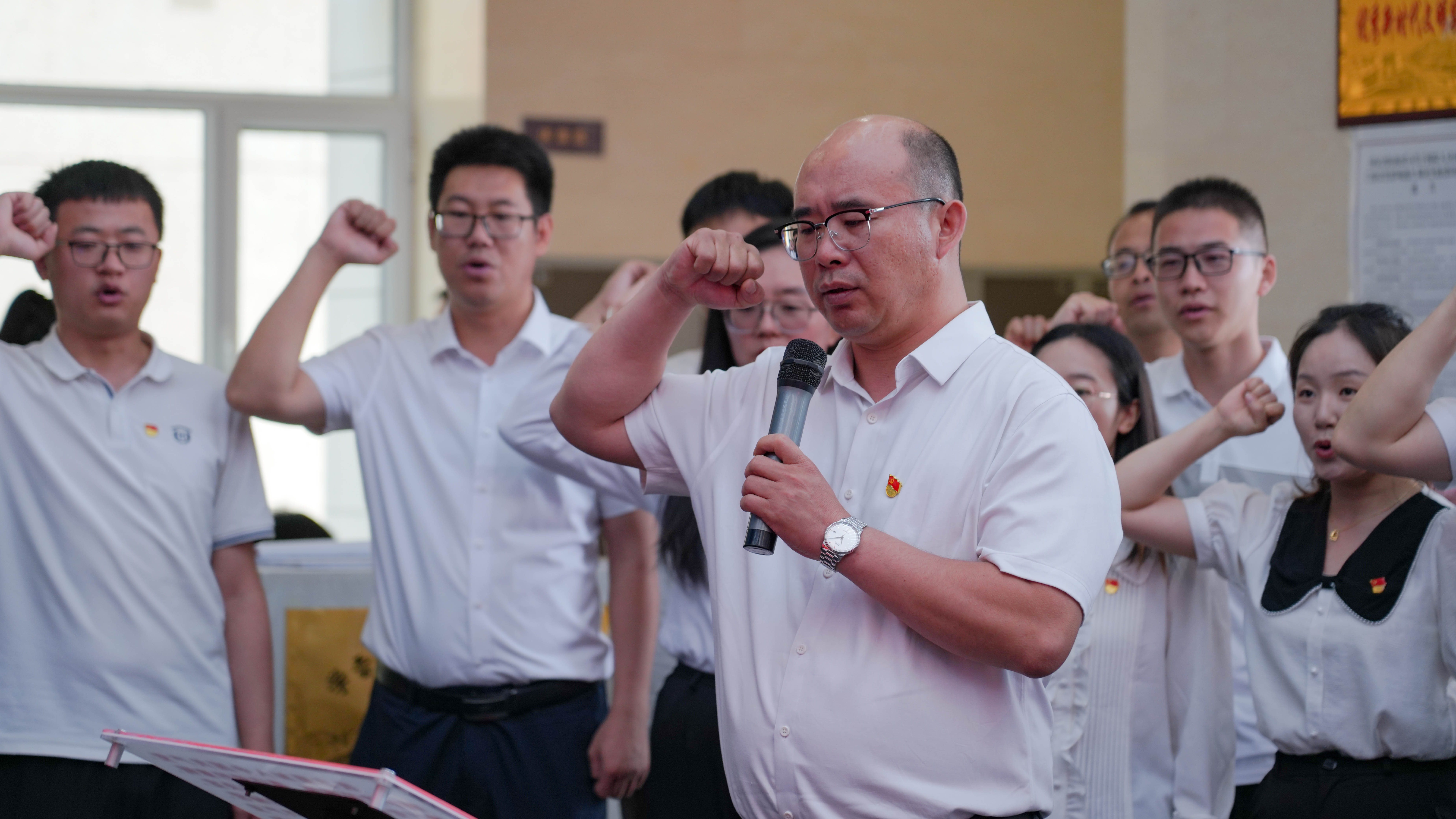 期间,机关党总支第三党支部书记杨洁同志代表全体党员向王进喜像进献花篮,并带领全体党员重温入党誓词。