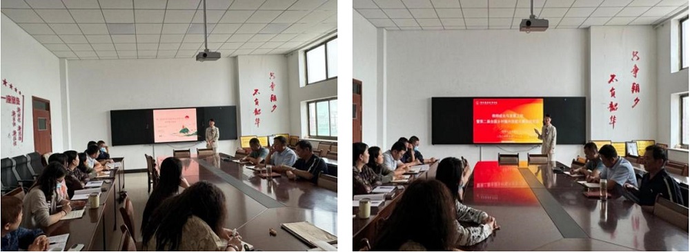 院系动态 > 正文为进一步发挥教师工坊的示范辐射作用,总结第二届全国乡村振兴职业技能大赛酒水服务赛项参赛经验、查找不足, 加强技能大赛过程性和常态化管理,提升旅游与烹饪学院在各级各类技能竞赛中的综合实力,5月28日,旅游与烹饪学院在行知楼710会议室成功举办了 “第二届全国乡村振兴职业技能大赛”赛后总结交流研讨活动。此次活动旨在通过精准分析参赛经验,促进学院教学水平和学生技能的提升,同时凝心聚力,为下一届大赛做好充分准备。全体教师参加了研讨交流。活动由学院党支部书记、院长刘兴龙主持。