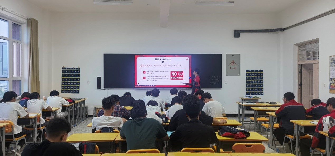 活动期间,各班团支书积极准备,引用了大量科学直观的数据,就烟中所含的有害物质、吸烟对人体的危害、二手烟暴露的危害、戒烟的好处等方面作了详细的讲解。同时也组织学习了学校对吸烟学生的管理要求,呼吁全体同学拒绝烟草,拥抱健康,让学生们都清楚地认识到了禁烟的必要性。