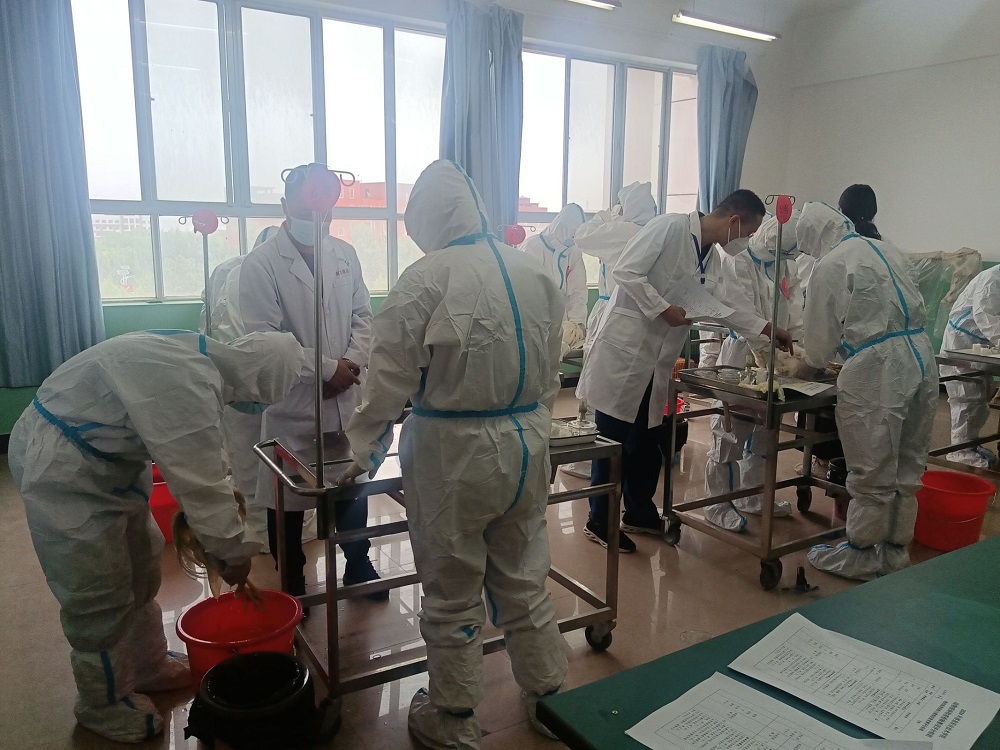 “动物疫病检疫检验”赛项严格按照省赛标准和要求,分为“鸡新城疫抗体水平测定”“鸡的病理剖检与镜检”和“理论考核”3个模块。主要考查参赛选手的动物免疫与疫病防控等知识素养,动物剖检、采样、检测和结果判定、分析应用等技能素养,以及团队协作、分析解决问题等能力素养。