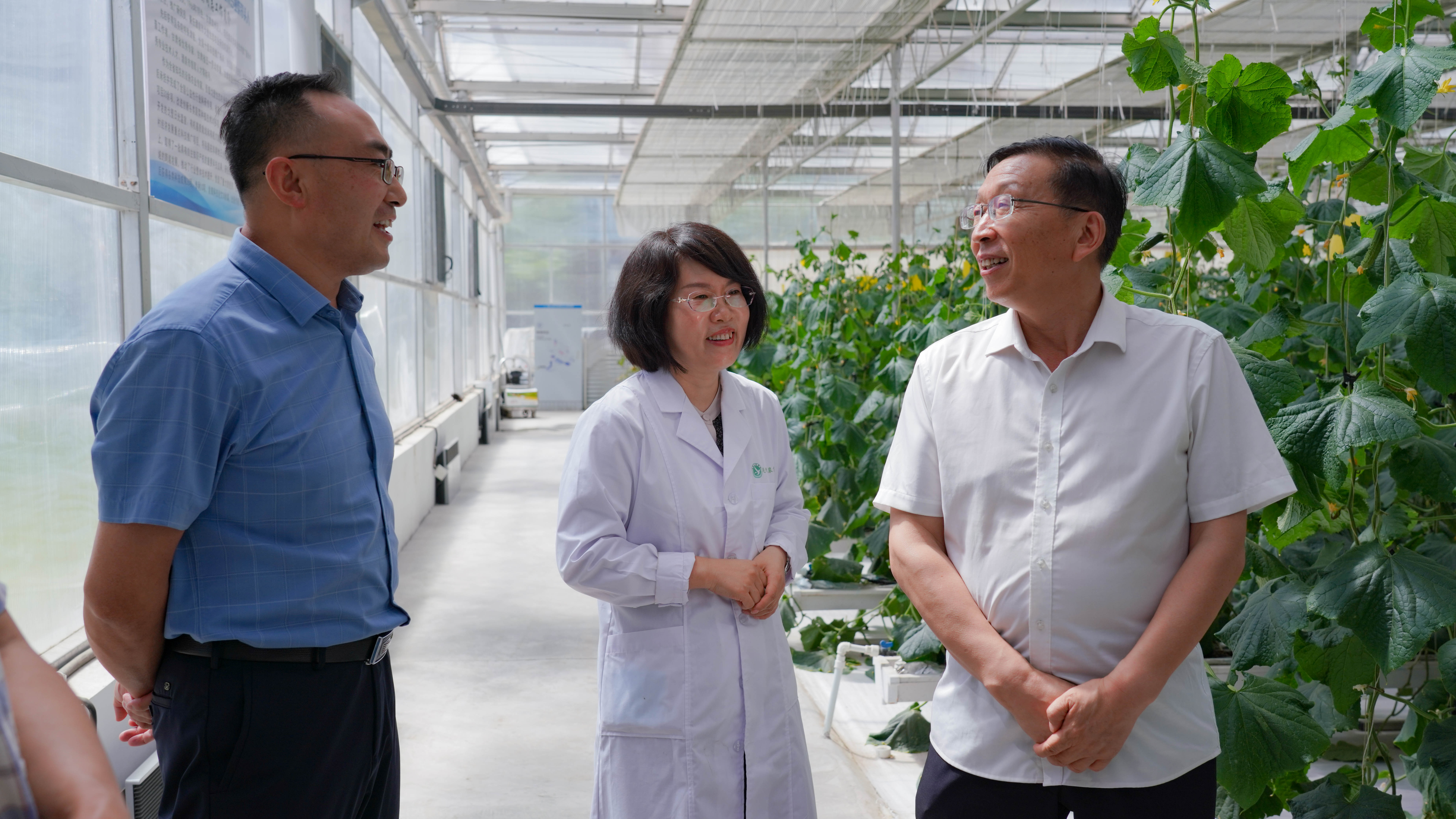 首先,易志军教授在学校师德标兵秦新惠教授的陪同下,和农业技术类师生代表共同参与现代农业技术中心的生产与管护任务,通过对生产示范区、水培区、育苗区等典型工作任务的实践教学全程参与,沉浸式的体验了整枝落蔓、人工授粉、水肥管理、水培洗苗定植和穴盘育苗等专业实践的关键环节,全身心感受现代农业生产新技术、新设备、新模式,体会“草花菜果、繁花硕果”的来之不易。