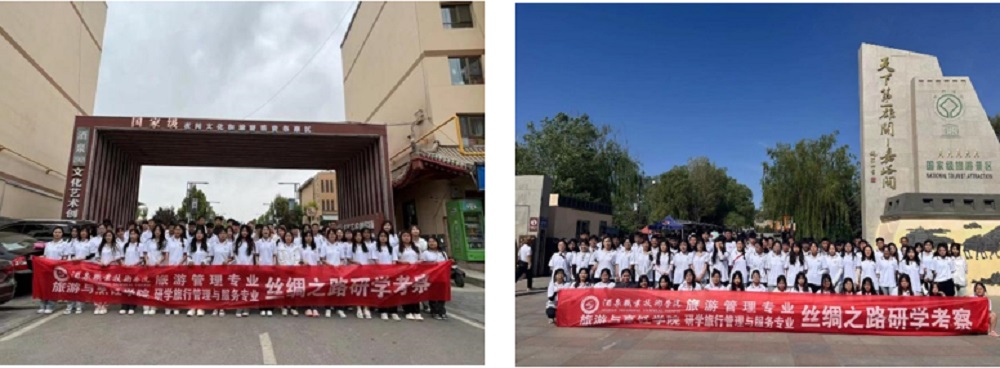 量身定制,体验实践教学新模式。为使学生充分接触社会,工学结合,在真实的工作环境中学习,理论紧密结合实际,亲身感受“丝绸之路”历史文化和旅游景观的实际状况,进一步培养学生职业素质、岗位技能和专业情感,拓宽专业视野,适应旅游业建设和发展第一线需要,依据《研学旅行管理与服务专业人才培养方案》,结合旅游管理专业群“三融四旅一引领”人才培养模式,组织2023级旅游管理专业、研学旅行管理与服务专业85名学生进行了“丝绸之路”研学考察实践,提升了学生的创新精神和岗位职业能力。
