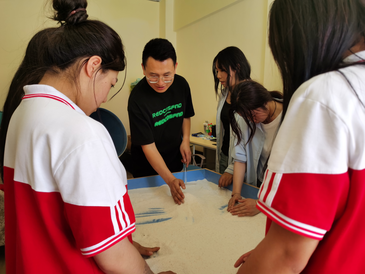 沙盘游戏中,夏老师首先向同学们详细讲解了心理沙盘的基本原理和操作方法,随后同学们在夏老师引导下将一个个充满象征意义的物件摆放在沙盘上,根据自己内心的真实感受尽情发挥想象,构建出各自独特的场景。沙盘构建完成后,同学们积极分享了自己的作品和创作过程,并分享了自己在团体沙盘过程中的内心体验、矛盾之处、情感变化。