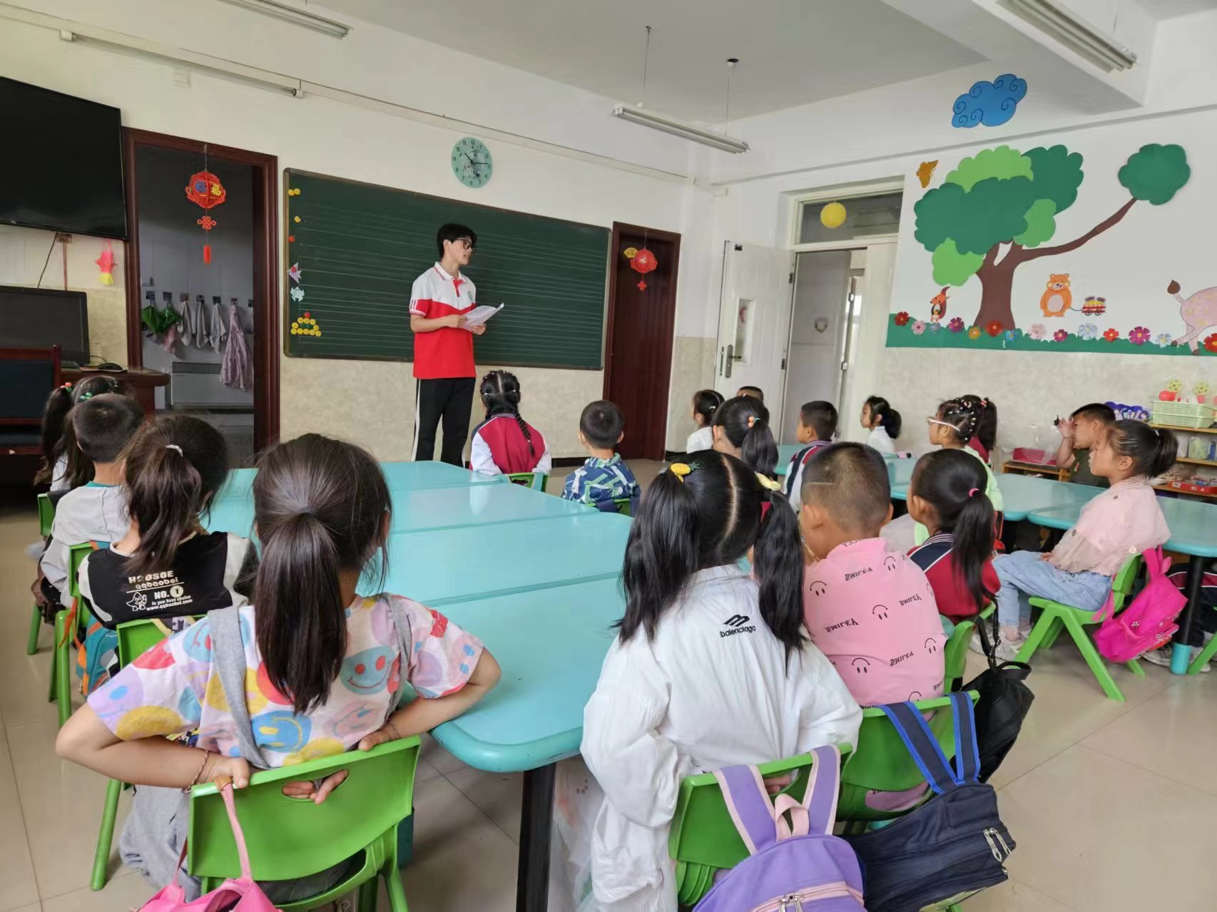 为深入贯彻落实习近平总书记关于语言文字工作的重要指示批示精神,加大国家通用语言文字推广力度,助力乡村振兴战略实施,增强大学生社会实践活动实效。6月18日,教育与艺术学院七色花志愿服务团队赴酒泉市果园乡中心幼儿园开展推普实践活动。