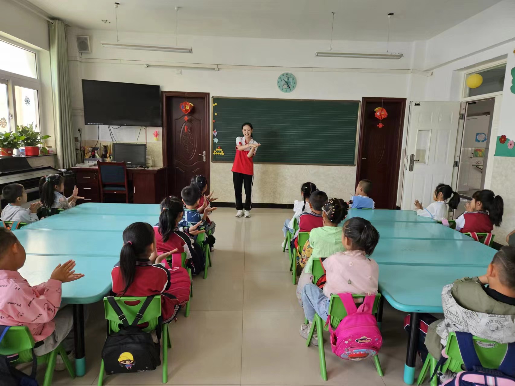 活动伊始,志愿者们从“什么是普通话”“为什么要说普通话”入手对小朋友们进行普通话知识宣讲,并发挥专业优势根据学前儿童语言发展特点,选取《沁园春·雪》《我骄傲,我是中国人》等诗篇节选进行诵读,让孩子们在听诵中初步感知语音语韵之美。活动中,志愿者们以“一对一”和“一对多”的形式有针对性地开展普通话发音活动练习,通过“绕口令大挑战”“摘果子游戏”“送字宝宝回家”等互动游戏,激发小朋友们学习普通话的兴趣,并针对幼儿常见的易错字音进行示范性发音训练,帮助小朋友们准确掌握普通话的发音。活动最后,志愿者结合红色经典故事为小朋友们绘声绘色的讲述了“井冈山上的吴月鹅”“八角楼上”“一根灯芯”等故事,并通过“听故事纠错音”进一步帮助小朋友们规范运用普通话,生动的故事、形象的描绘不仅让小朋友们在潜移默化中感受语言文字的魅力和力量,也让小小朋友们意识到正确学习普通话、规范使用普通话的重要性。