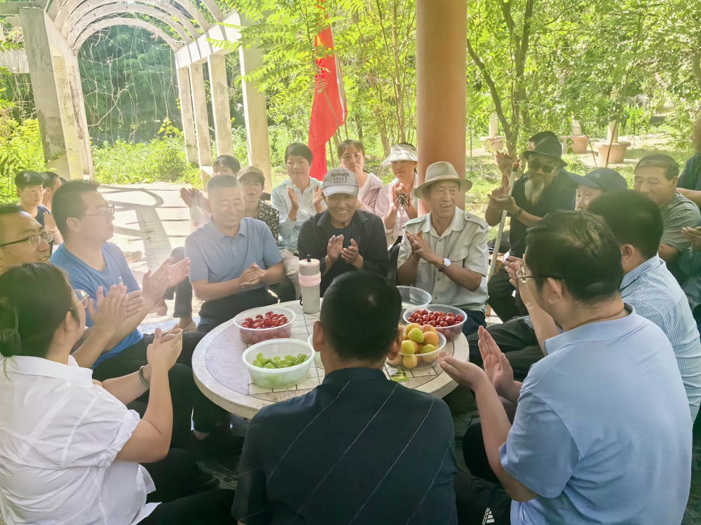 活动第二部分是听丁家闸村老党员讲党课。在肃州区水务局讨北罐区水利管理所凉亭下,全体教师认真聆听了丁家闸村党员领导干部带领村民开展河流生态修复与治理,充分利用水资源,改善讨赖河丁家闸村段生态环境和水资源的可持续利用的故事。使全体教师认识到河道治理是提升人居环境、提升村民生活品质、助力乡村振兴的重要举措,也是推进生态文明建设的重要民生工程。