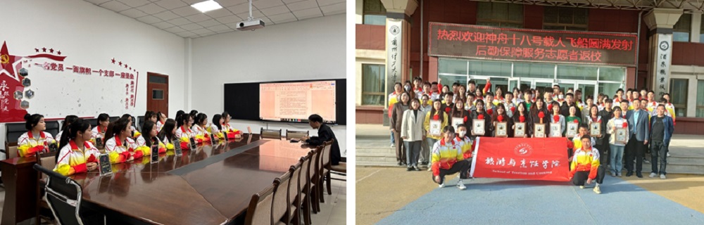 在神舟十八号载人飞船发射任务及神舟十七号载人飞船返回任务期间,我院酒店管理与数字化运营、烹饪工艺与营养、旅游管理三个专业共计57名同学,他们分为三批,先后奔赴酒泉卫星发射中心,提供餐饮、住宿、观礼人群志愿引导等保障服务。他们凭借专业的技艺和严谨的工作态度、良好的团队协作精神,为来自四面八方的航天专家和工作人员提供了周到的服务,赢得了广泛赞誉。他们以高度的责任感和专业技能,圆满完成了后勤保障工作,展现了旅游与烹饪学院学子的风采和实力。