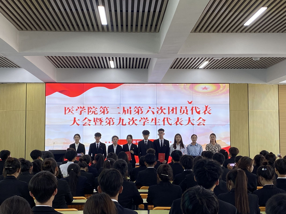 第二阶段由院领导向上一届团学干部颁发聘书,肯定了团学组织在医学院团学管理中的重要作用,鼓励2022级团学干部在实习岗位上继续发挥好团学干部的先锋模范作用,继续协助指导老师和实习单位做好实习相关工作。