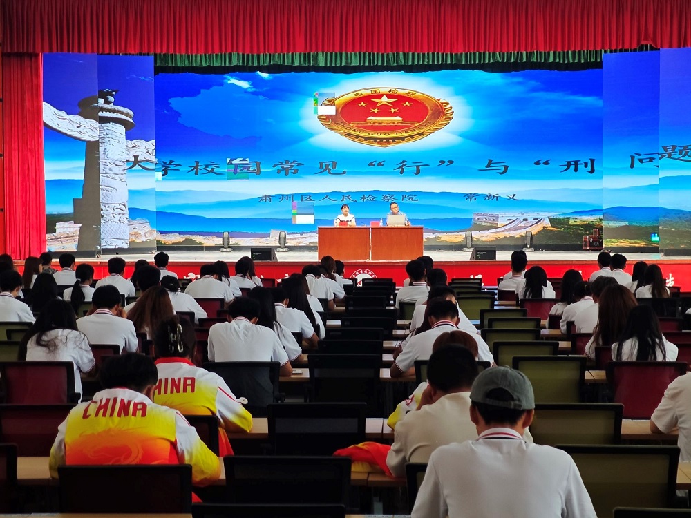 院系动态 > 正文为深入推进校园法治教育,增强学生法治观念,法律意识,提高自我保护意识,引导学生们在日常生活、学习及未来职业选择中远离刑事犯罪风险。7月12日上午,我院邀请酒泉市肃州区人民检察院常新义检察官来校开展以“大学校园常见“行”与“刑”的问题”为主题的法制教育专题讲座。