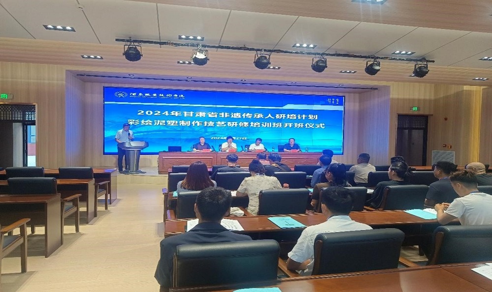 8月27日上午,2024年甘肃省非遗传承人研培计划彩绘泥塑制作技艺研修培训班在酒泉职业技术学院开班。酒泉市文体广电和旅游局党组成员、副局长陈锦业,酒泉职业技术学院党委委员、副院长王金明出席开班式并讲话。