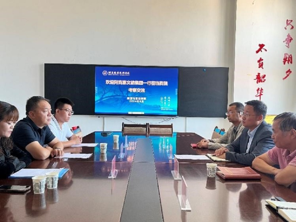 刘兴龙院长代表学院对阿克塞文旅集团莅临学院表示热烈欢迎,多年来对学院各项工作的支持表示衷心的感谢。他表示,双方合作已有多年,在人才培养、产教融合、实习就业等各个方面开展了一系列卓有成效的合作,拥有良好的基础。同时,刘院长分别汇报了学院的人才培养和就业工作情况,他表示,阿克塞文旅集团各位代表到来,正如金秋时节庆丰收,校企双方发挥各自优势、共同推进产学研协同创新搭建了重要平台。随后,马东邦副院长在研学课程深度开发、校企合作项目建设、产教融合、学生培养模式方面进行了深入交流;杨蕊肇副院长在学生实习、就业方面与企业交换了意见。