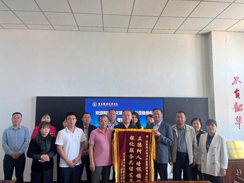 会后,阿克塞文旅集团送上锦旗,不仅是对旅游与烹饪学院教育成果的高度认可与赞扬,更是对未来继续深化校企合作的殷切期望与坚定信心。学院在未来的教育教学工作中,将继续深入推进校企合作,努力培养出更多适应时代需求的高素质专业人才,为毕业生就业打下坚实基础。