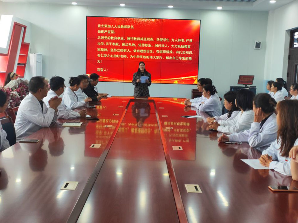 在这金秋送爽,花果飘香的季节,我们迎来了第四十个教师节,为庆祝第40个教师节,9月10日下午,医学院在弘远楼A501会议室开展“践行教育家精神,勇担强国使命”主题党日活动,向辛勤耕耘在教育一线的全体教师致以节日的问候。会议有医学院党支部书记、院长范玉敏主持,医学院全体教职工参加。