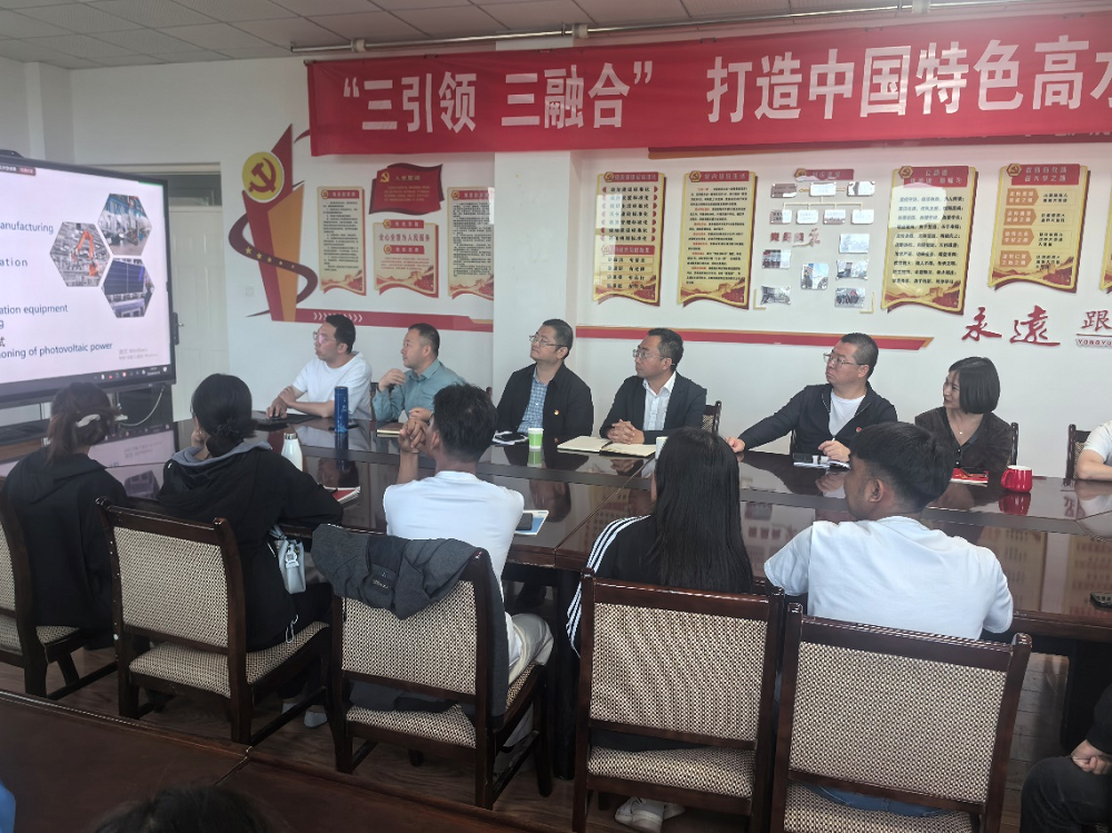 会上,党支部书记、院长程明杰对各位留学生的到来表示诚挚的欢迎,介绍了近年来学院取得的各类显著成绩,对留学生提出了期望。同时,各系主任分别介绍了风力发电工程技术、光伏发电工程技术、电力系统继电保护技术、供用电技术、热能动力工程技术、太阳能光热技术与应用、新能源装备技术等7个专业,每个专业都详细的介绍了专业特色、专业优势、人才培养体系、师资力量、科研水平以及就业方向。