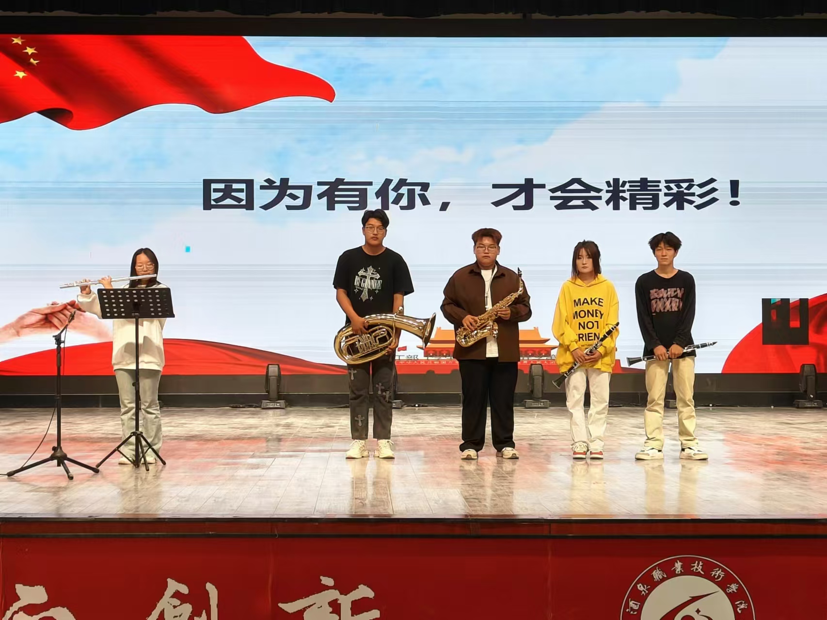 胡杨国旗护卫队身着漂亮军装,威武霸气队列,在舞台上社团展示风采,赢得新生阵阵掌声和欢呼声,新生纷纷表示要奋斗在这个严肃热情的组织,让青春在国旗下闪耀。胡杨管乐团从多个方面介绍了管乐团中的乐器种类,让同学们对管乐团有了充分的了解,现场观众屏息聆听,在精彩的演奏中现场感受音乐的魅力。