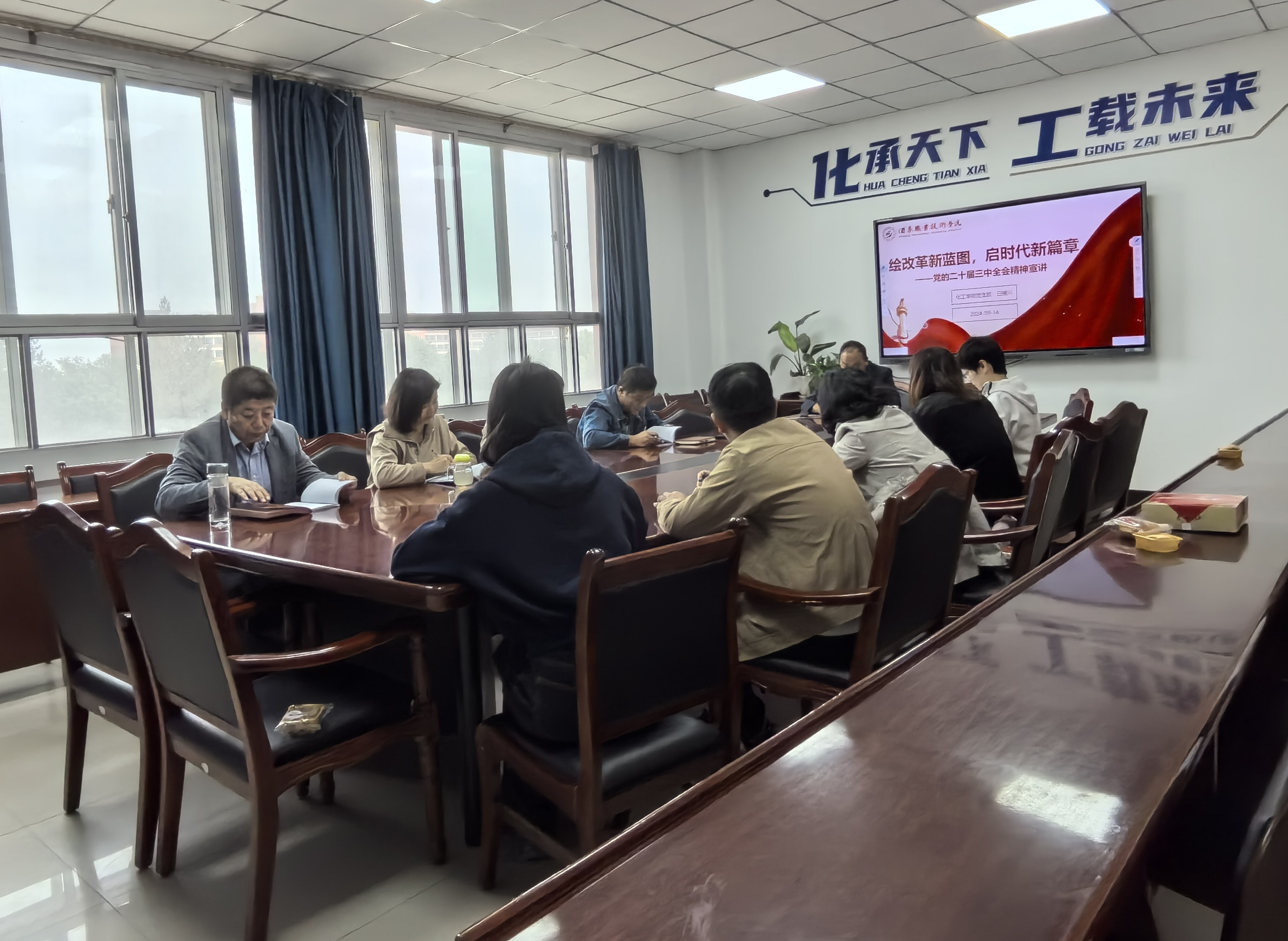 9月14日下午,化工学院党支部在逸夫楼二楼会议室举行了“学习贯彻党的二十届三中全会精神”宣讲报告会,化工学院党支部书记、院长白锦川同志主讲,全体党员参加会议。