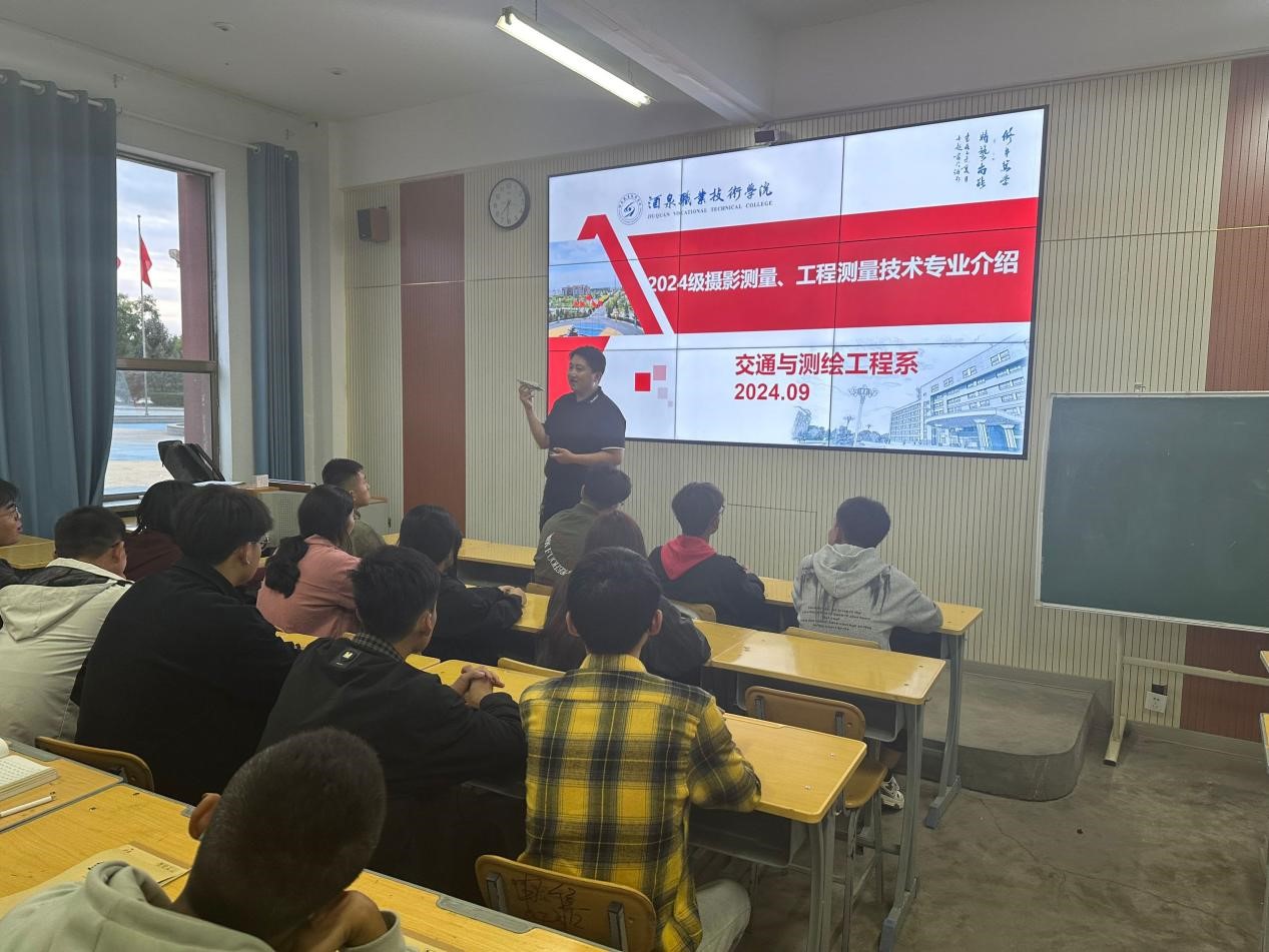 宣讲活动现场,水利工程系、交通与测绘工程系、建筑工程系的专业负责人分别从各自专业领域出发,结合学院专业类别、师资团队、实训实践条件等,全面介绍了学院专业课程设置、研究方向、发展前景以及与行业对接的实践机会。他们以生动的案例和详实的数据,展示了各专业在理论研究与实际应用中的重要地位,为新生们描绘了专业学习的广阔前景。同时特别邀请了玉门油田培训学校资深教师方超老师为测量专业的同学们进行了“从校园到职场,土木工程专业人才的培养与成长”的专题分享,鼓励同学们要注重实践能力的培养,积极参与各类实习实训活动,为将来的职业发展打下坚实的基础。