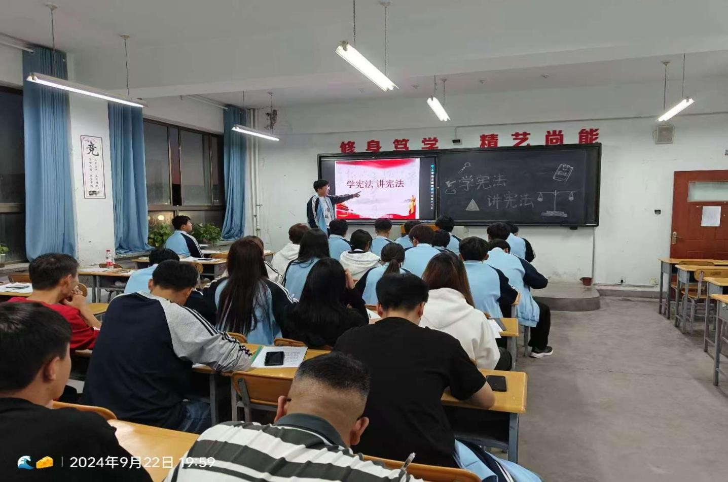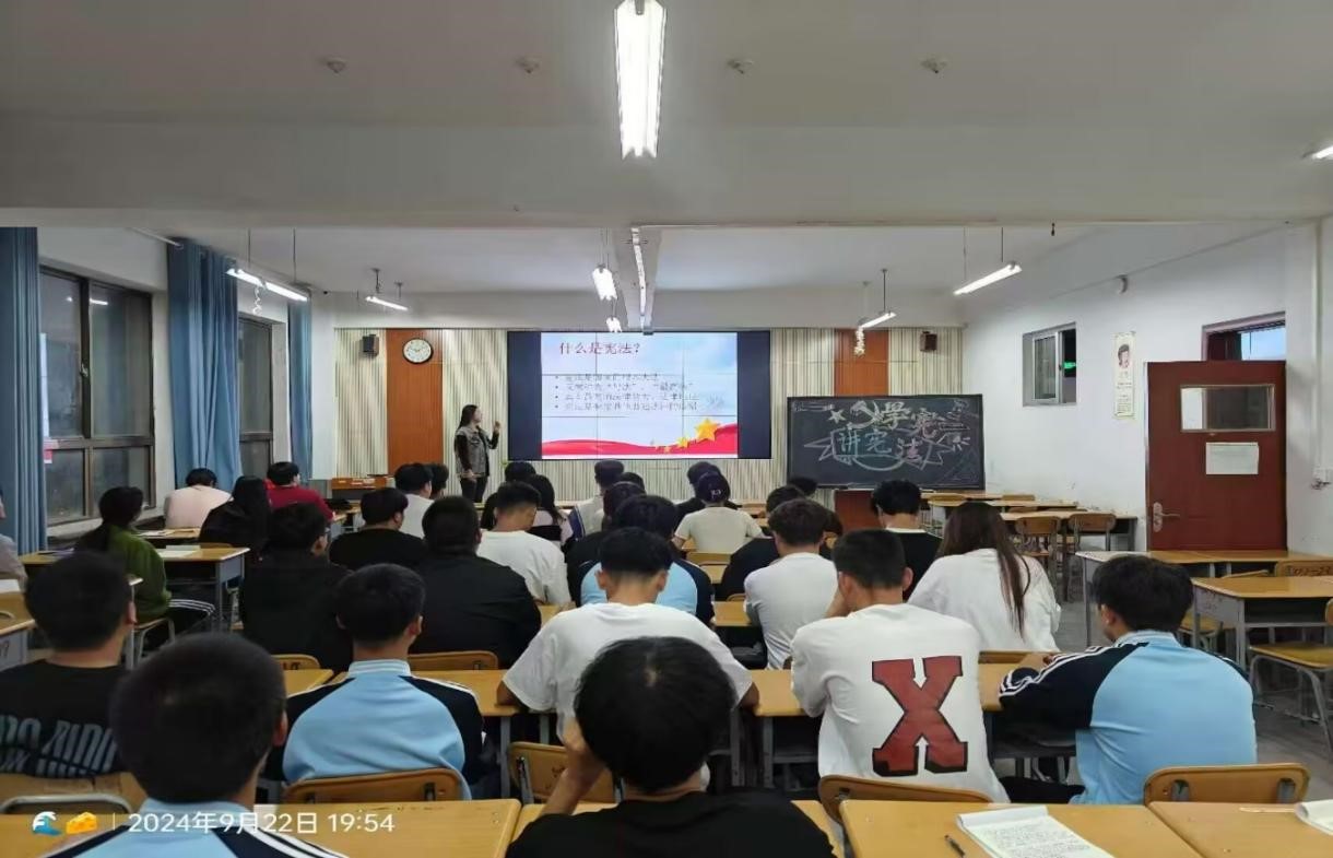 各班级利用晚自习时间,组织开展了宪法主题班会。班会围绕“宪法与我”、“宪法在我心中”等主题,通过观看宪法宣传视频、宪法知识竞答、分享宪法故事等形式,让同学们在轻松愉悦的氛围中学习宪法知识,深刻理解宪法在国家政治生活中的地位和作用。
