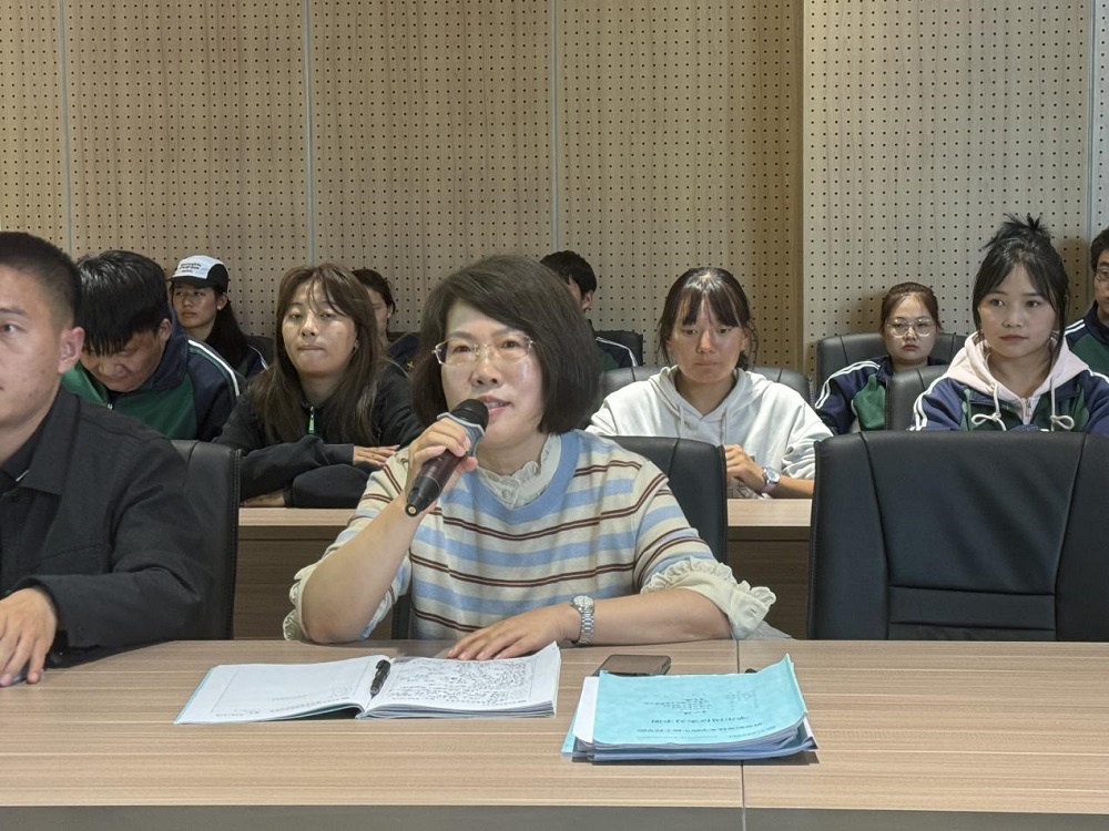 秦新惠作总结发言,高度肯定了同学们在生产实习期间的表现,指出生产实习是教学中必不可少的一环,作为涉农专业的大学生,劳动是我们的天职,也是今后走向社会、创造价值、报效祖国的最重要的方式。希望同学们通过生产实习,参与到了农业生产、乡村建设等劳动实践活动中,深入了解了乡村的发展现状和需求,提升了同学们对乡村的热爱和责任感。