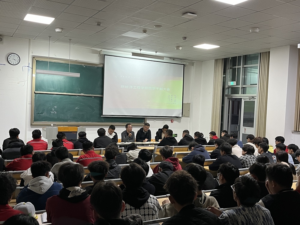 新能源工程学院于10月10日在致远楼东阶梯教室召开团学干部大会,会议由学院党支部副书记李亮主持,党支部书记、院长程明杰,学生管理相关教师及全体团学干部参加了此次会议。
