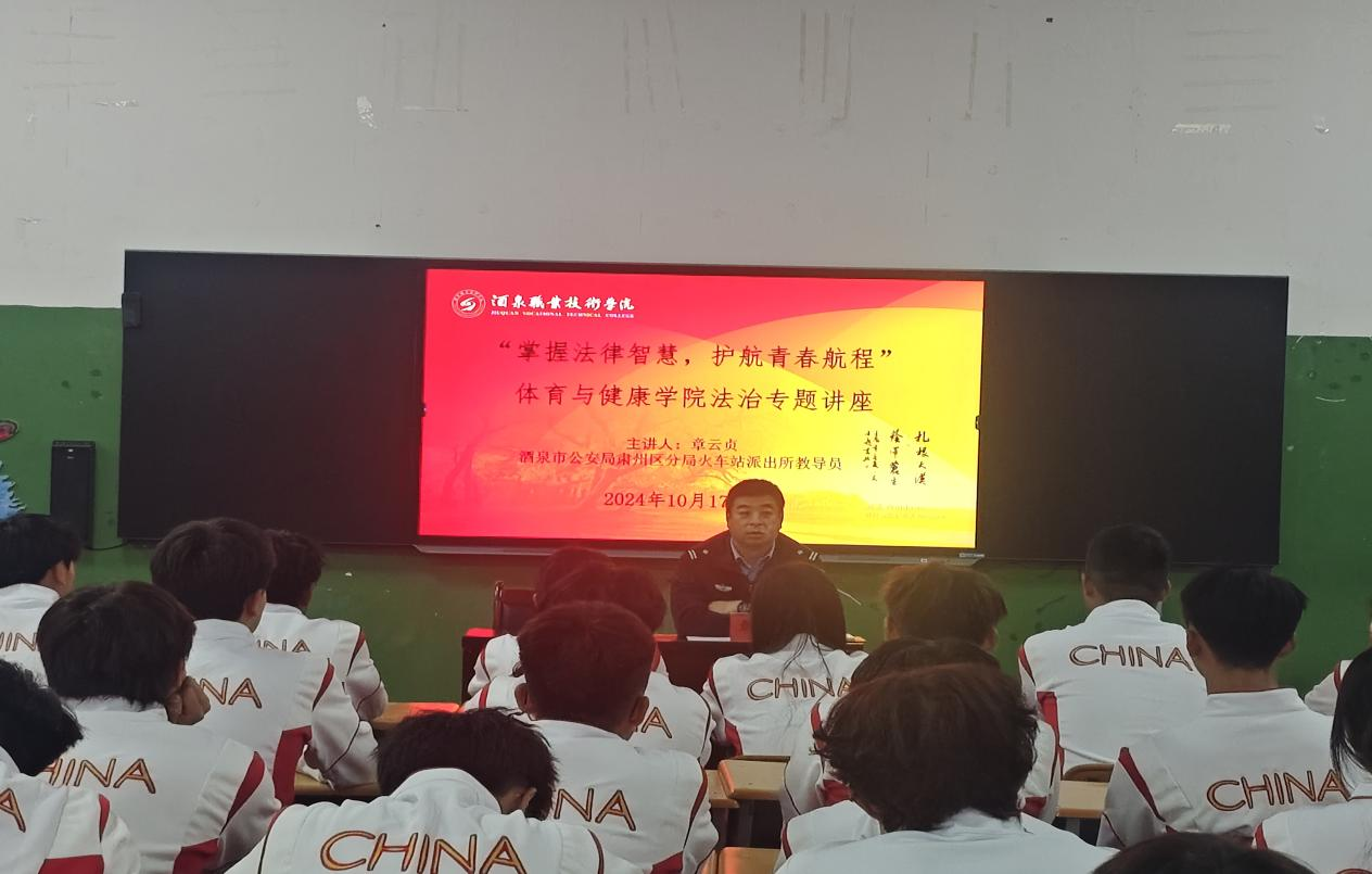 随后,主讲嘉宾——酒泉市公安局肃州分局火车站派出所教导员章云贞。他结合典型案例,深入剖析了大学生在日常生活和学业中可能遇到的法律问题;针对网络安全、校园欺凌、家庭教育等方面,详细分析了青少年可能面临的法律风险,并提出了相应的防范措施;围绕“法治精神与青年责任”,阐述了法治社会的基本原则和价值观,强调法治对于维护社会秩序、保障公民权益的重要性,他指出,青年作为国家的未来和希望,更应该树立正确的法治观念,积极履行公民责任。