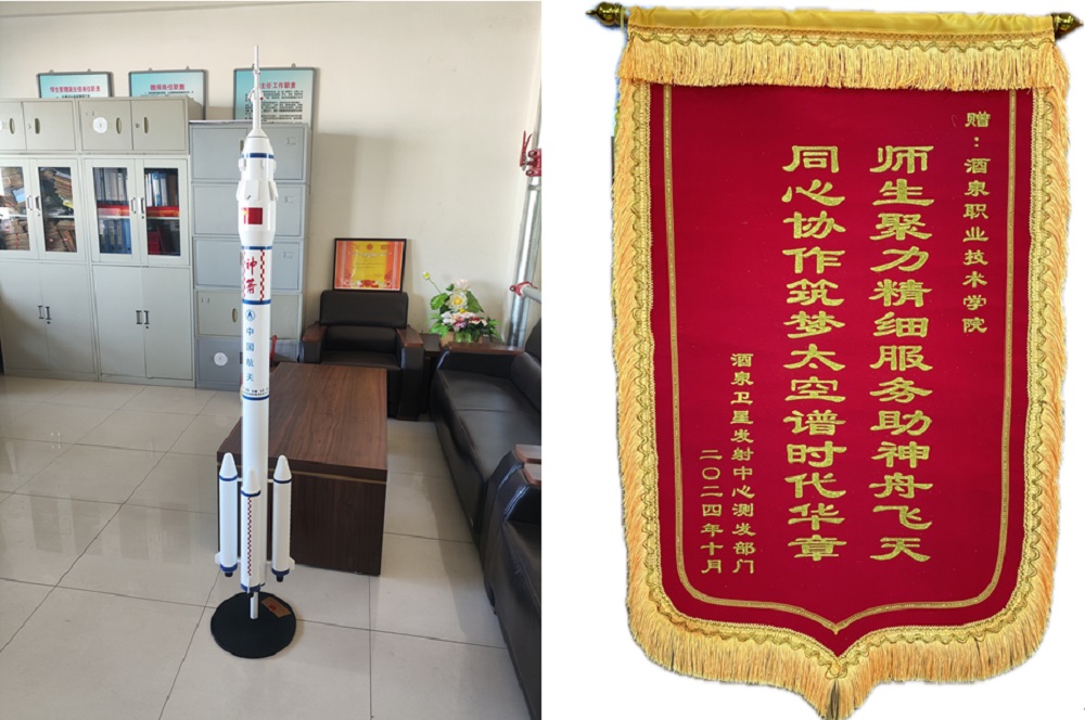 为表彰同学们在此次任务中的卓越贡献与无私奉献,基地首长亲自为他们颁发了志愿服务奖杯,以资鼓励。同时,中国酒泉卫星发射中心东风宾馆向我院赠送了一套长征二号火箭模型,中国人民解放军63601部队也向我院赠送了锦旗,以此表达对我院培养优秀人才、支持国家航天事业发展的崇高敬意。这一举动不仅是对同学们个人努力的肯定,更是对我院长期以来坚持军民融合发展道路、积极投身国家重大科技项目建设的生动诠释与高度认可。