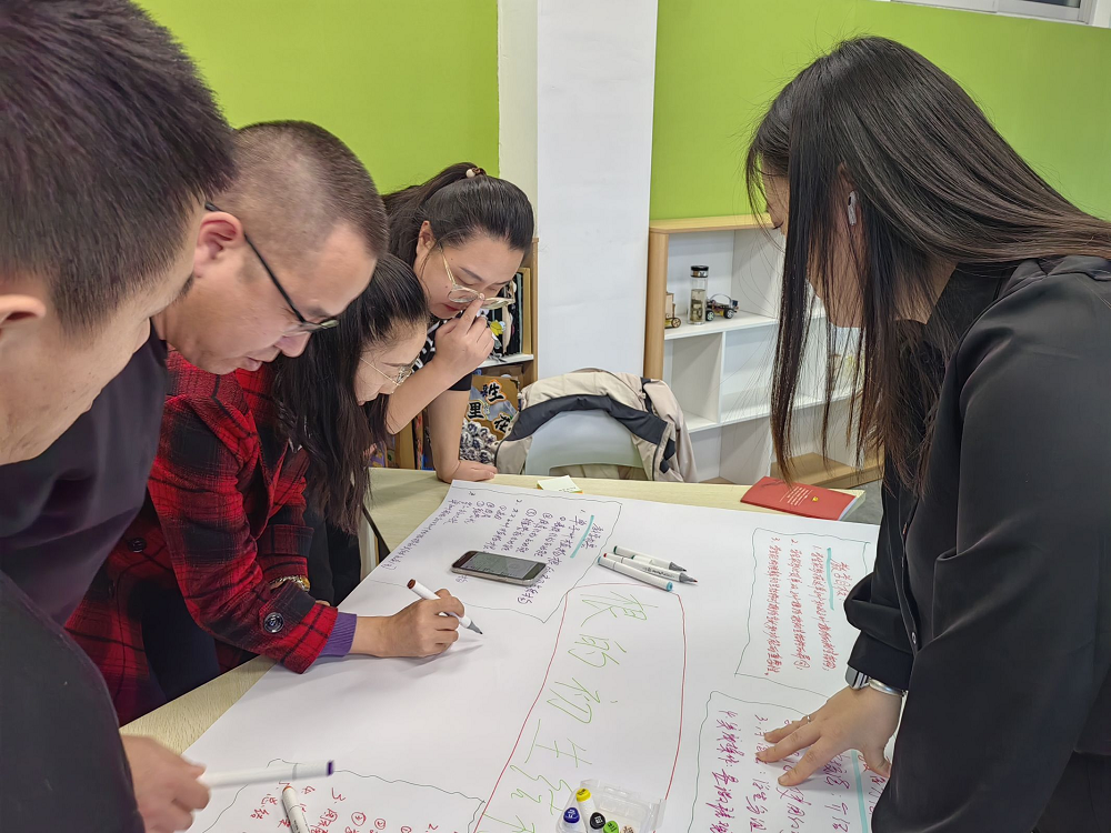 活动中,智慧树产品经理汤丽丽通过丰富的实际案例,深入浅出地介绍了知识图谱的概念、技术架构以及在教育教学中的巨大潜力。参训团队在智慧树金课咨询师韩亚潮、客户经理李金龙、王金平三位小组长带领和悉心指导下,遴选相关课程内容,围绕“精心构筑模块”“匠心绘制一门图谱” “悉心打造一节AI课”三个内容,利用 AI 技术,进行了课程模块设计、知识图谱和问题图谱绘制等实操体验和交流分享。
