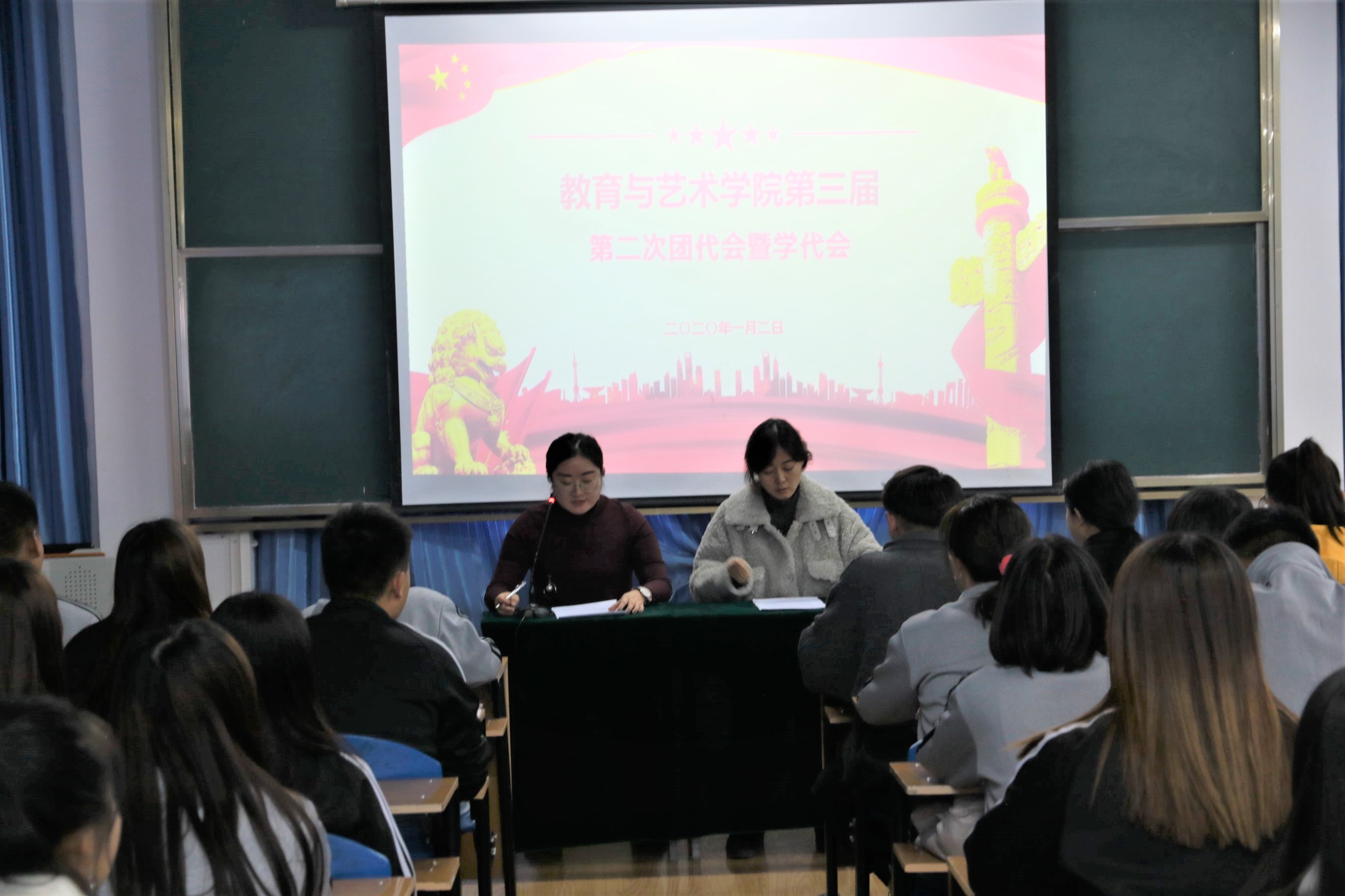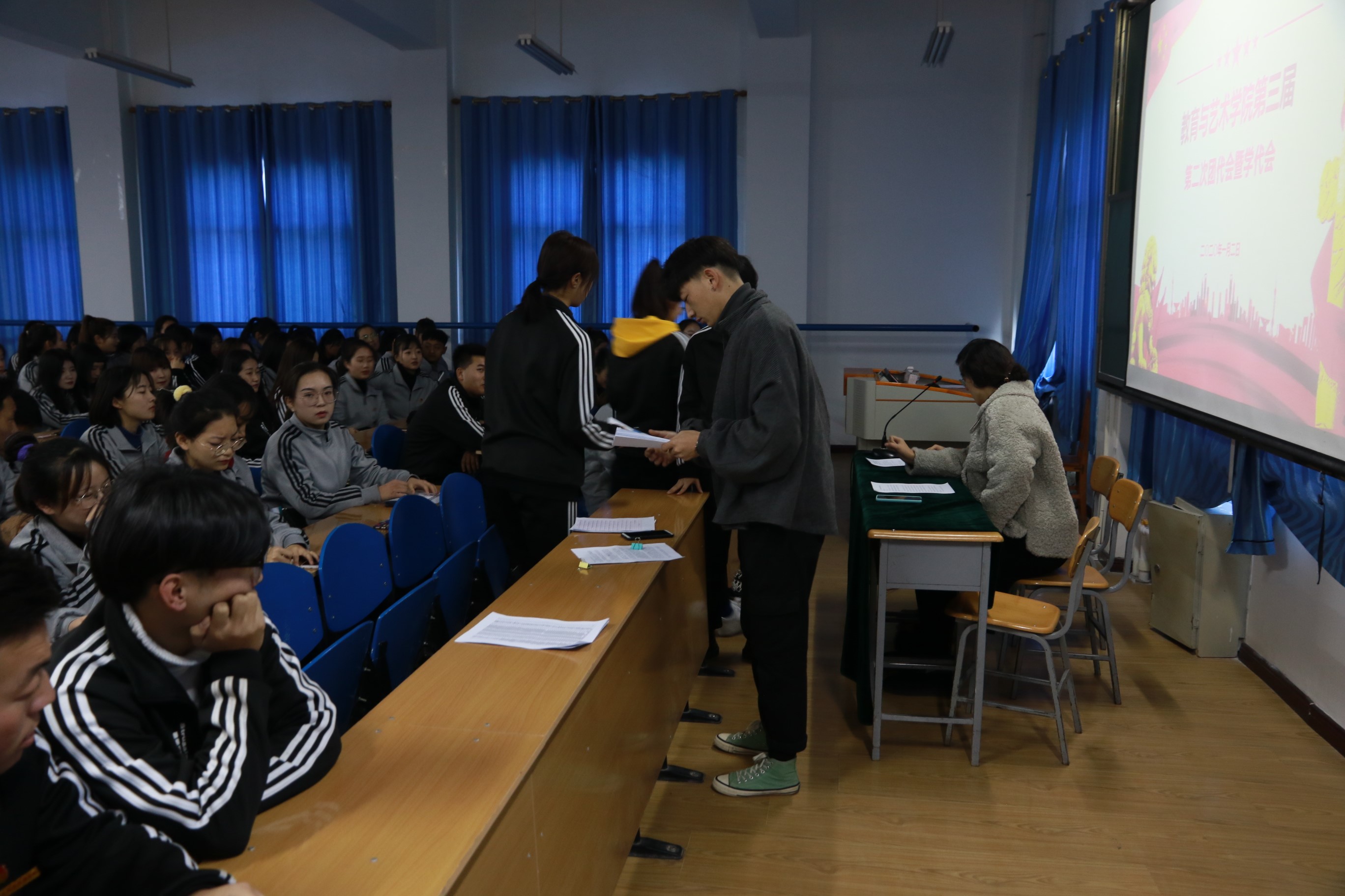 大会介绍了本次团学两代会团总支副书记候选人、学生分会主席团候选人及个人信息,通过无记名投票选举。选举了新一届团总支副书记和学生会主席团成员,原学生分会主席马龙同学作学生分会工作报告,汇报2019年度各部门工作情况。新一届团总支副书记发言表态:任重道远,始终要牢记服务为宗旨,“在其位、谋其政”在工作中不断锻炼自己,找到工作和学习的方法,不辜负同学们的支持和信任。