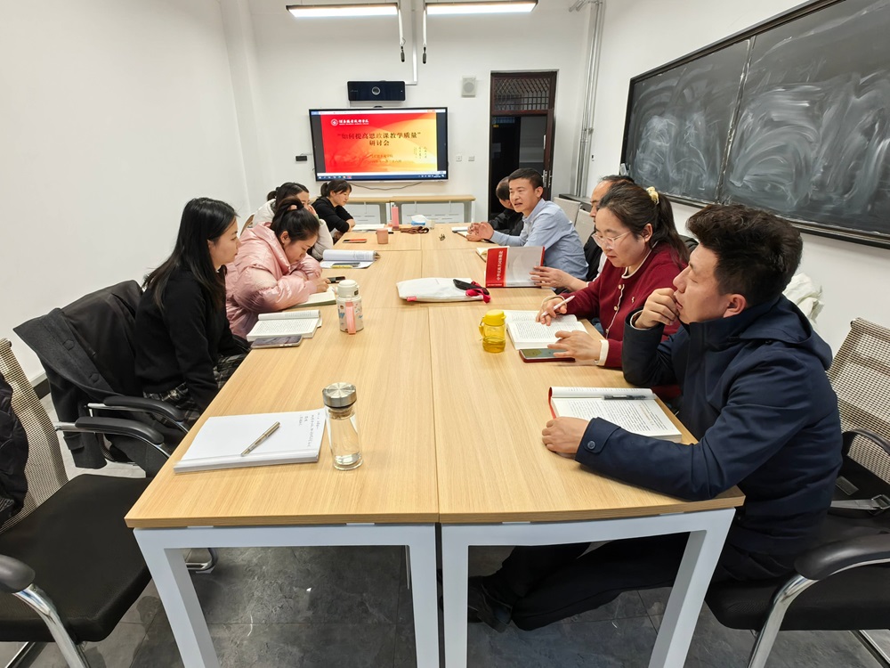 院系动态 > 正文近日,为充分发挥思政课程在人才培养中的重要作用,我校思政教研室根据《关于组织开展第三十八届教学主题月活动的通知》的相关安排,于11月26日下午在弘毅楼A412会议室成功举办了“如何提高思政课程教学质量”研讨会。