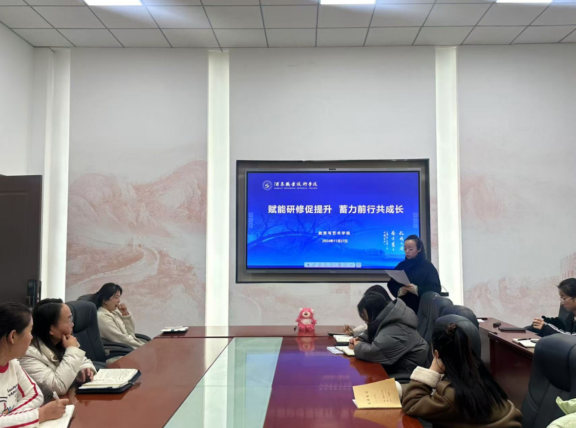 为进一步提高教师教学能力,提升教师的专业素质,11月27日下午,教育与艺术学院在行知楼704会议室开展“甘肃省2024年职业院校教师素质提高计划国家级培训项目——1+X幼儿照护证书种子教师”培训分享交流会。会议由学院副院长于芳主持,全体教职工参加。